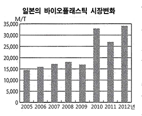 일본 바이오플래스틱 시장이 2010년 3만3000톤으로 전년대비 2배 성장했다. 표, 그래프: < 일본의 바이오플래스틱 시장변화 > <화학저널 2013/03/26> |