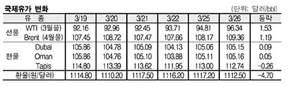 3월26일 국제유가는 미국의 경기지표 호조 등으로 상승했다.
