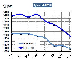 표, 그래프: < Xylene 가격추이 > <화학저널 2013/03/27> |
