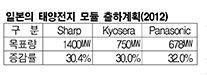 일본의 태양전지 메이저들이 2012년 출하량을 약 30% 확대할 계획이었으나 산업용 중심으로 운용하던 생산기업들은 고전을 면치 못한 것으로 나타났다. 표, 그래프: < 일본의 태양전지 모듈 출하계획(2012) > <화학저널 2013/03/29> |
