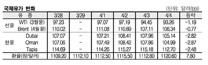 4월4일 105.14달러로 2.82달러 폭락 … 브렌트유는 106.34달러