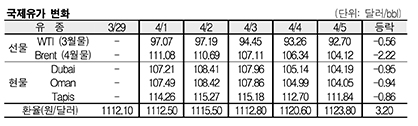 4월5일 국제유가는 주요국가의 경기지표 악화 등의 영향으로 하락했다.