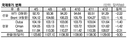 4월12일 101.64달러로 1.40달러 급락 … WTI도 91.29달러로 폭락세