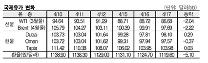 4월17일 국제유가는 주요 국가의 경기지표 악화, 미국의 달러화 강세 및 원유 생산 증가 영향으로 폭락했다.