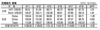 4월18일 국제유가는 유럽의 경제위기 우려 완화, 미국 달러화의 약세 등으로 상승했다.