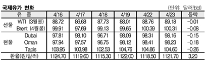4월23일 98.16달러로 0.15달러 하락 … 브렌트유 100.31달러