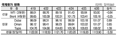 4월26일 국제유가는 미국의 경기지표 악화 등의 영향으로 하락했다.