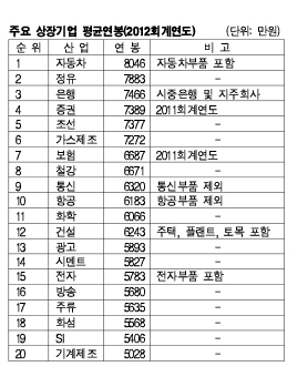 2012년 정유 7883만원에 화학 6066만원 … 제약은 4775만원