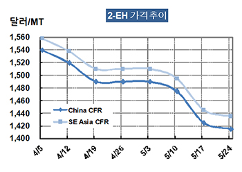 표, 그래프: < 2-EH 가격추이 > <화학저널 2013/05/30> |