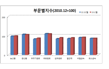 한국수입업협회에 따르면, 4월 KOIMA지수는 338.44포인트로 2.71포인트 떨어졌다. 석유화학제품은 수입가격이 수요 약세 및 국제유가 하락으로 7.1% 떨어져 가장 큰 폭의 하락률을 기록했으며, 농산물은 수확량 증가 영향을 받아 마이너스 4.9%, 합섬원료도 경기침체에 따라 수요가 줄어들어 마이너스 4.6%를 나타냈다. 은 가격은 거래 부진으로 12.5% 떨어져 수입품목 가운데 가장 큰 하락률을 기록했고, 프로판도 마이너스 11.7%로 달러화 강세 및 수요 감소로 뒤를 이었다. AN(Acrylonitrile)은 마이너스 8.7%로 경기침체에 따른 약세를 나타냈으며, 나프타(Naphtha)도 수요 감소 영향으로 7.5% 떨어져 높은 하락률을 기록했다. ![]() 반면, 철광석은 전반적인 약세 속에 타이트한 공급으로 32.2% 올라 가장 큰 폭의 상승률을 기록했고, 마그네슘은 공급 부족으로 6.2%, 유연탄도 오스트레일리아 기상 이변에 따른 공급 차질로 4.24% 오른 것으로 나타났다. 수입업협회 관계자는 “4월 KOIMA지수는 미국의 경기지표 악화, 세계경제 둔화 지속 등으로 대부분의 품목이 하락했다”며 “앞으로도 세계경제의 둔화 현상이 지속되는 한 원자재 가격은 약세를 기록할 가능성이 크다”고 예상했다. <우연서 기자> <화학저널 2013/05/31> |
