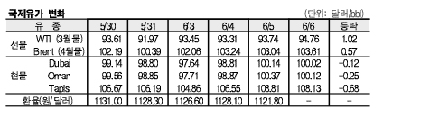 6월6일 100.02달러로 0.12달러 하락 … 브렌트유는 103.61달러