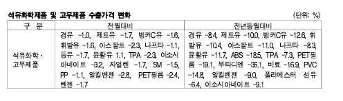 표, 그래프: <석유화학제품 및 고무제품 수출가격 변화> <화학저널 2013/06/12> |