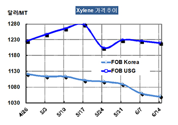 M-X 가격은 6월17일 FOB Korea 톤당 1050달러로 10달러 하락했다.
