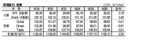 6월26일 국제유가는 미국의 양적완화 정책 지속 가능성과 주요 국가의 경기부양 정책 기조 유지로 상승했다.