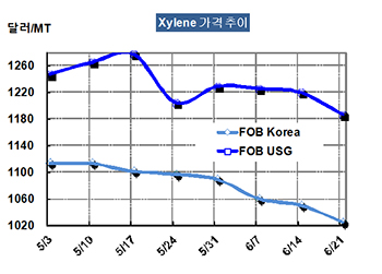 표, 그래프: < Xylene 가격추이 > <화학저널 2013/06/27> |