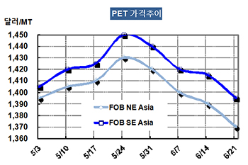 아시아 PET(Polyethylene Terephthalate) 시장이 추락하고 있다.