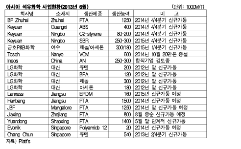 Hanbang·JBF·BP 2014년 신규가동 … 아시아 공급과잉 부채질