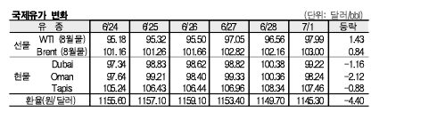 7월1일 99.22달러로 1.16달러 급락 … 브렌트유 103달러 형성
