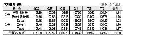 7월3일 105.76달러로 1.76달러 상승 … 두바이유도 101달러 상회