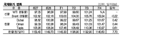 7월4일 국제유가는 미국 달러화 강세의 영향으로 하락했다.