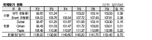 7월9일 103.30달러로 0.16달러 올라 … 브렌트유 107.81달러 형성