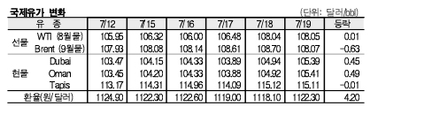 7월18일 105.39달러로 0.45달러 상승 … 브렌트유 108.07달러