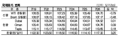 7월26일 국제유가는 중국의 저성장 우려 등의 영향으로 하락했다.