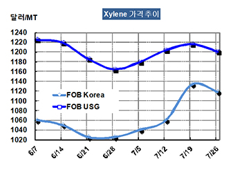 표, 그래프: < Xylene 가격추이 > <화학저널 2013/07/30> |