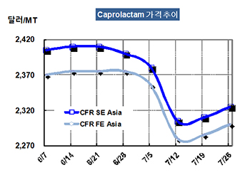 표, 그래프: < Caprolactam 가격추이 > <화학저널 2013/08/06> |