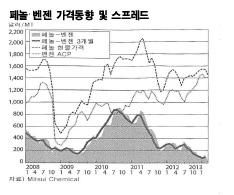 신규 가격결정체계는 기본적으로 3개월, 6개월 등 일정기간을 설정해 가격결정요소인 원료가격 및 해당제품 현물가격의 이동평균에 따라 산출하는 것으로 기간이 3개월일 때 1월 가격은 1-3월 현물가격의 이동 평균치를 채용하는 방식이다. ![]() 지금까지는 단월 현물가격을 기준으로 결정했으나 신규체계로 전환함으로써 가격 및 마진 변동이 억제될 것으로 예상되고 있다. 또 원료인 벤젠(Benzene), P-X(Para-Xylene) 가격체계는 금융공학 기법을 활용해 원유 선물가격을 채용한 위험분산 개념을 도입한 것으로 알려졌다. Mitsui Chemicals은 신규체계를 도입함으로써 서플라이 체인 전반적으로 수익 변동을 억제함과 동시에 다운스트림으로 갈수록 변동폭이 축소되는 구조를 구축할 수 있어 안정적인 원료 확보를 지향하는 수요처의 니즈에 대응할 수 있을 것으로 기대하고 있다. Mitsui Chemicals의 주력 기초화학제품인 페놀과 PTA는 중국을 중심으로 대규모 신증설이 계속됨과 동시에 원료가격이 상승함에 따라 수익이 크게 악화되고 있다. 이에 따라 2012년 기초화학제품 부문 영업이익이 189억엔 적자를 기록한 것으로 나타났다. Mitsui Chemicals은 코스트경쟁력 강화, 제휴 확대에 따른 자체소비체제 확립, 비즈니스 모델 변혁을 추진함으로써 기초화학제품 부문의 영업이익을 2014년 흑자화한 후 2015년 100억-150억엔으로 확대할 방침이다. 표, 그래프: < 페놀‧벤젠 가격동향 및 스프레드 > <화학저널 2013/08/09> |