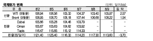 8월9일 국제유가는 중국의 경기지표 개선과 중동 및 북아프리카 지역의 정정불안이 지속된 영향으로 급등했다.