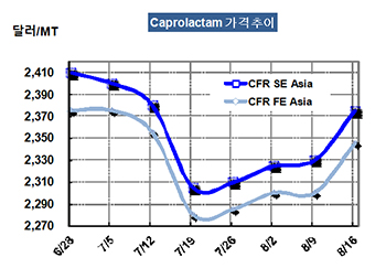 표, 그래프: < Caprolactam 가격추이 > <화학저널 2013/08/22> |