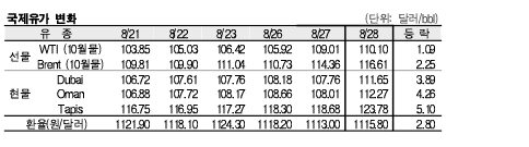 8월28일 3.89달러 올라 … 브렌트유도 116.61달러로 상승
