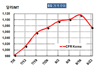 표, 그래프: < EG 가격추이 > <화학저널 2013/08/29> |