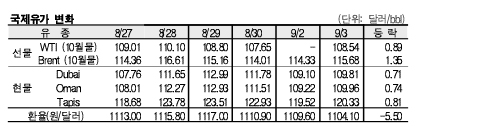 9월3일 국제유가는 시리아 공습에 대한 우려 증대와 미국 경기지표 개선 등을 배경으로 상승했다.