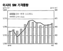아시아 SM(Styrene Monomer) 가격이 상승과 하락을 반복하고 있다.