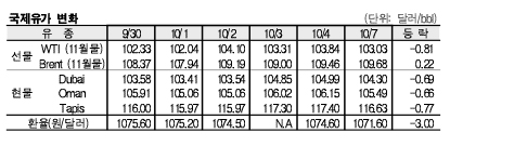 10월7일 국제유가는 유로존 경기지표가 개선되고 중동지역의 정정불안 등의 영향으로 상승했다.