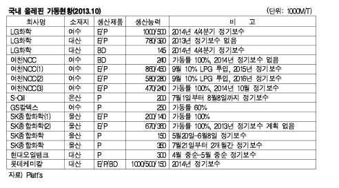 여천NCC‧SK종합화학 풀가동 … LG화학은 2014년 4/4분기 보수