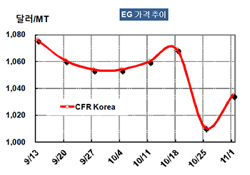 표, 그래프: < EG 가격추이 > <화학저널 2013/11/05> |