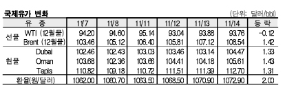 표, 그래프: < 국제유가 변화 > <화학저널 2013/11/15> |