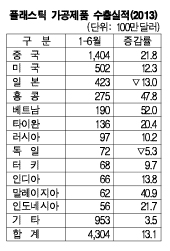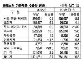 플래스틱 가공제품은 2012년 수출량이 149만톤으로 2.7%, 수출액이 78억1000만달러로 7.6% 증가했다.