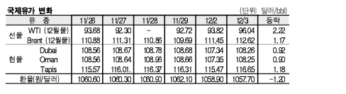 12월3일 국제유가는 미국의 원유 재고 감소 전망 등으로 상승했다.