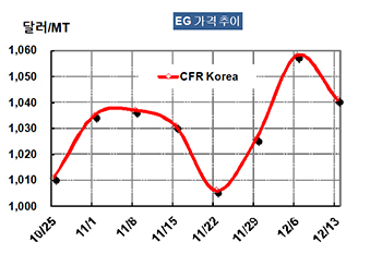 표, 그래프: < EG 가격추이 > <화학저널 2013/12/17> |