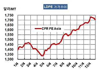 LDPE 가격은 2013년 12월24일 CFR FE Asia 톤당 1705달러로 마무리했다.