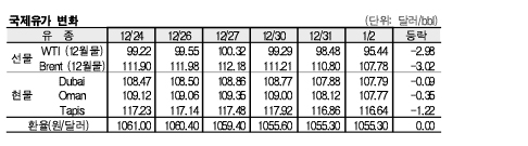 1월2일 국제유가는 리비아의 원유 생산 재개 전망과 중국의 경기부진 우려 영향으로 폭락했다.