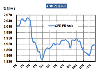 ABS 가격은 2013년 12월24일 CFR China 톤당 1915달러로 마무리했다.
