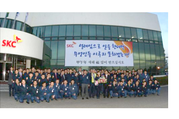 SK텔레시스는 최신원 회장이 2014년 1월2일 SKC솔믹스 평택공장 및 SKC 수원공장을 방문한데 이어 3-4일 SKC코오롱PI 구미·울산 공장, SKC 진천공장, SKC하스 천안공장을 찾아 경영목표 달성을 결의하고 직원들을 격려했다고 1월5일 밝혔다. ![]() 연초 전국 사업장을 직접 돌며 소통경영을 실시하고 있는 최신원 회장은 “화학산업은 경계가 없고 할 일은 무궁무진하다”며 “시너지를 낼 수 있는 분야부터 사업영역을 넓혀나가자”고 당부했다. 이어 “기업의 성패를 가르는 가장 큰 요인은 조직문화”라며 “구성원의 아이디어를 공유·발전시켜 작은 혁신이 많이 일어나는 창조적 조직문화를 만들자”고 강조했다. <화학저널 2014/01/06> |