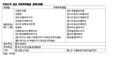 표, 그래프: < 비의도적 생성 유해화학물질 분류(23종) >