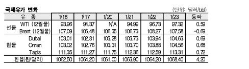 1월23일 국제유가는 중국과 미국의 경기지표가 부진하면서 하락했다.