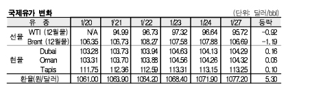 1월27일 국제유가는 미국의 양적완화 축소 및 중국의 경기부진 우려로 하락했다.
